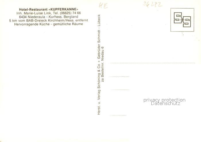 73651613 Niederaula Hotel Restaurant Kupferkann Bar postalisch nicht gelaufen Erhaltung siehe scans [FriedD77] KatCode: 11110006632015