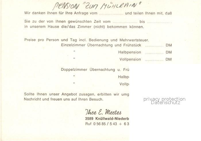 73653735 Niederbeisheim Ortsansicht mit Pension Zum Muehlrain postalisch nicht gelaufen Werbekarte (keine Postkarte) Erhaltung siehe scans [FriedD77] KatCode: 11110006634011