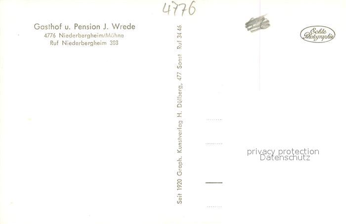73694390 Niederbergheim Gasthof Pension Wrede postalisch nicht gelaufen Erhaltung siehe scans [WerneD78] KatCode: 11110005974044