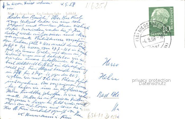 31910312 alte Postkarte Niederbrechen Fliegeraufnahme postalisch gelaufen Erhaltung siehe scans KatCode: 11110006533002