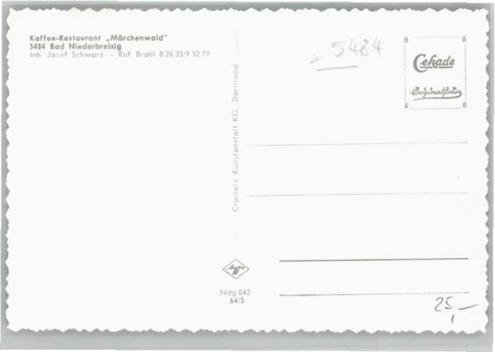 40651124 Niederbreisig Bad Breisig Ahrweiler Rheinland-Pfalz Cafe Restaurant Maerchenwald postalisch nicht gelaufen Alte Ansichtskarte Postkarte Katcode 11110007131006