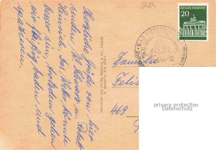 74053275 Niederbreisig Bad Breisig Ahrweiler Rheinland-Pfalz Panorama Blick ueber den Rhein Kurhotel Rheinpromenade Hallenbad postalisch gelaufen Erhaltung siehe scans [FriedD77] alte Postkarte Frie Katcode 11110007131006