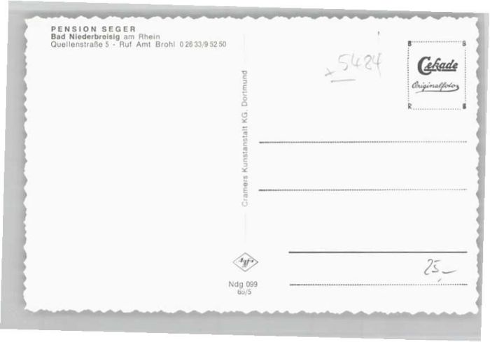 40651125 Niederbreisig Bad Breisig Ahrweiler Rheinland-Pfalz Pension Seger postalisch nicht gelaufen Alte Ansichtskarte Postkarte Katcode 11110007131006