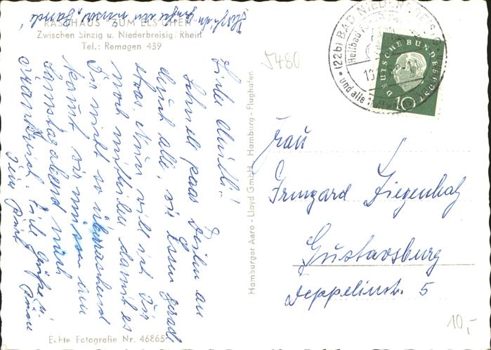 41310882 Niederbreisig Fliegeraufnahme Rasthaus zum Elschen Autos Busse KatCode 11110007131006