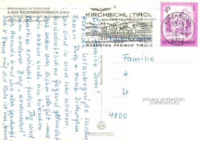 72900453 alte Postkarte Niederbreitenbach Fliegeraufnahme mit Schloss Schoenwarth postalisch gelaufen Erhaltung siehe scans [FriedD77] KatCode: 11390335070515