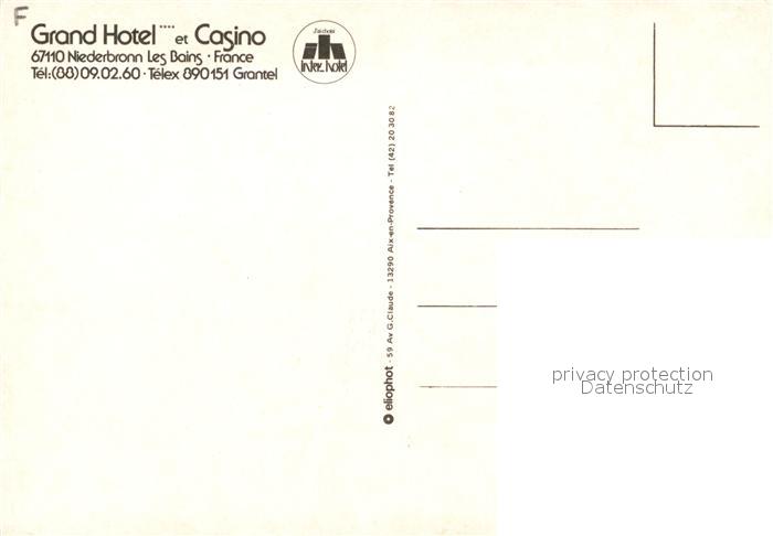13162337 Niederbronn-les-Bains Grand Hotel et Casino postalisch nicht gelaufen Erhaltung siehe scans [FriedD77] KatCode: 11170067267324