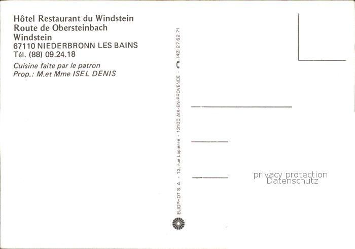 11908655 Niederbronn-les-Bains Hotel Restaurant Windstein postalisch nicht gelaufen Erhaltung siehe scans KatCode: 11170067267324