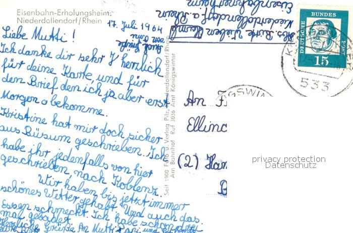 73615933 alte Postkarte Niederdollendorf Eisenbahn Erholungsheim postalisch gelaufen Erhaltung siehe scans [WerneD78] KatCode: 11110005382024
