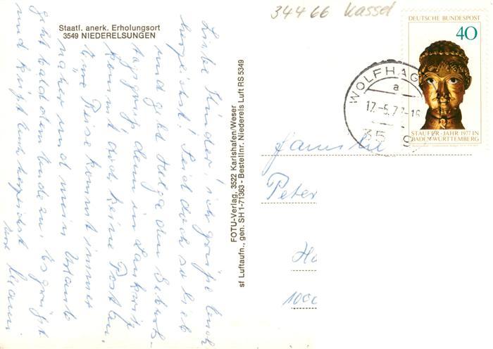 73883088 alte Postkarte Niederelsungen Fliegeraufnahme postalisch gelaufen Erhaltung siehe scans [FriedD77] KatCode: 11110006633028