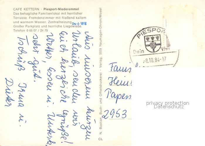 73720237 alte Postkarte Niederemmel Cafe Kettern Gastraeume postalisch gelaufen Erhaltung siehe scans [WerneD78] KatCode: 11110007231105