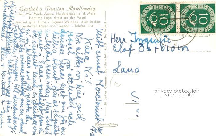 33612211 alte Postkarte Niederemmel Gasthof Pension Moselloreley postalisch gelaufen Erhaltung siehe scans [FriedD77] KatCode: 11110007231105