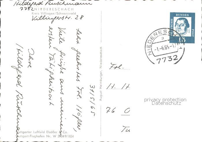 31850106 alte Postkarte Niedereschach Fliegeraufnahme postalisch gelaufen KatCode: 11110008326041