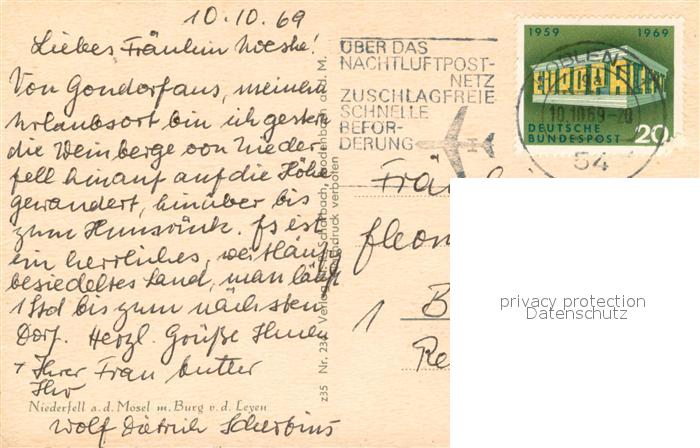 73645104 alte Postkarte Niederfell Fliegeraufnahme mit Burg von der Leyen postalisch gelaufen Erhaltung siehe scans [WerneD78] KatCode: 11110007137217