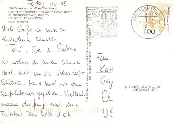 73705862 alte Postkarte Niederfinow Schiffshebewerk postalisch gelaufen Fliegeraufnahme Erhaltung siehe scans [FriedD77] KatCode: 11110012060172