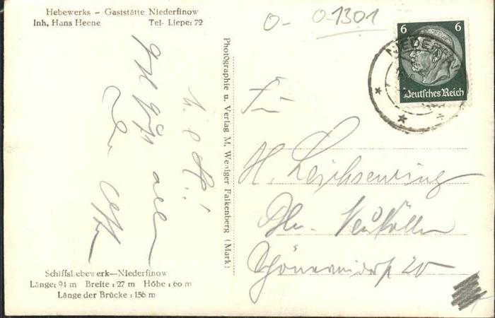41401846 alte Postkarte Niederfinow Schiffshebewerk postalisch gelaufen KatCode: 11110012060172