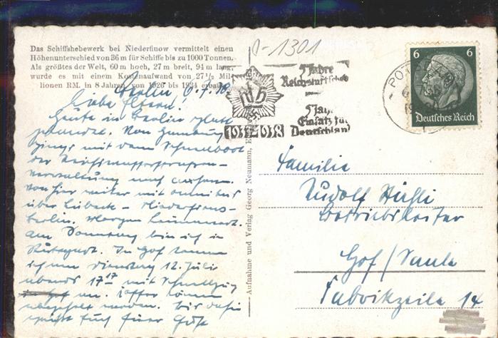 41401903 alte Postkarte Niederfinow Schiffshebewerk Hohenzollernkanal postalisch gelaufen gute Erhaltung KatCode: 11110012060172