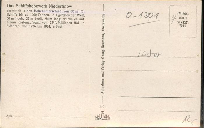 41401848 Niederfinow Schiffshebewerk Kahn Schlepper postalisch nicht gelaufen Erhaltung mit Maengel KatCode: 11110012060172
