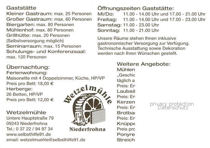 73791332 Niederfrohna Gaststaette Wetzelmuehle postalisch nicht gelaufen Erhaltung siehe scans [WerneD78] KatCode: 11110014173180