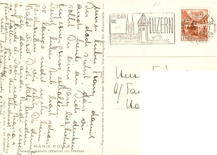 13879582 Niedergestein Raron VS im Herbst Marie Rollé Kuenstlerkarte postalisch gelaufen Erhaltung siehe scans [FriedD77] alte Postkarte Frie Katcode 11470230730556