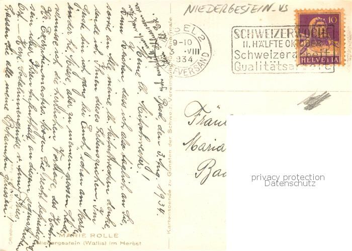 13760828 alte Postkarte Niedergestein Raron VS Teilansicht m. Ziegen Kuenstlerkarte M. Rolle postalisch gelaufen Erhaltung siehe scans [LiesaD40] KatCode: 11470230730556