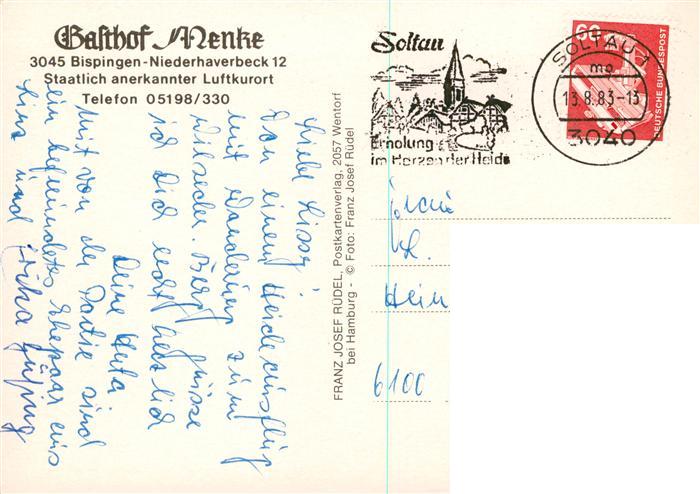 73895630 alte Postkarte Niederhaverbeck Bispingen Gasthof Menke postalisch gelaufen Erhaltung siehe scans [FriedD77] KatCode: 11110003358002