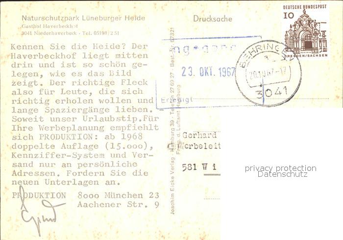 72374711 alte Postkarte Niederhaverbeck Gasthof Haverbeckhof postalisch gelaufen Erhaltung siehe scans KatCode: 11110003358002