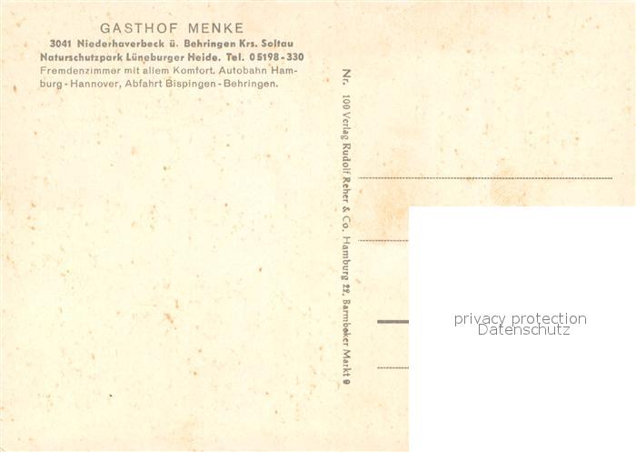 73642275 Niederhaverbeck Gasthof Menke Lueneburger Heide postalisch nicht gelaufen Erhaltung siehe scans [WerneD78] KatCode: 11110003358002