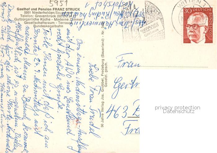73863514 alte Postkarte Niederhelden Gasthof Pension Franz Struck postalisch gelaufen Erhaltung siehe scans [WerneD78] KatCode: 11110005966004