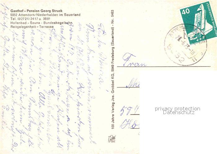 72833496 alte Postkarte Niederhelden Gasthof Pension Georg Struck Kaminzimmer postalisch gelaufen Erhaltung siehe scans [FriedD77] KatCode: 11110005966004