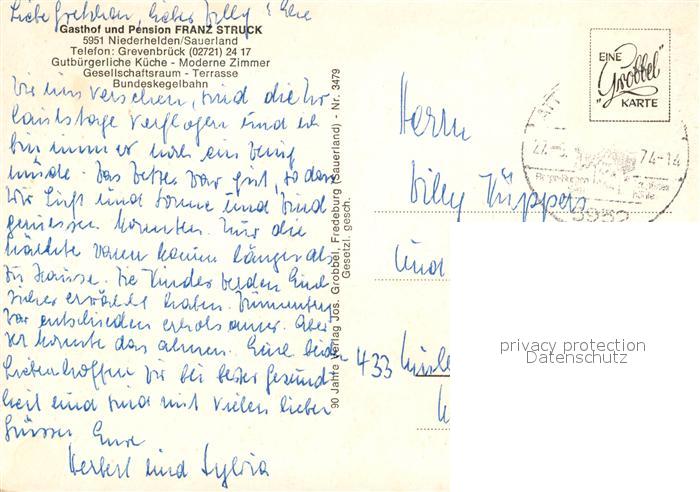 73017823 alte Postkarte Niederhelden Gasthof und Pension Franz Struck postalisch gelaufen Erhaltung siehe scans [WerneD78] KatCode: 11110005966004
