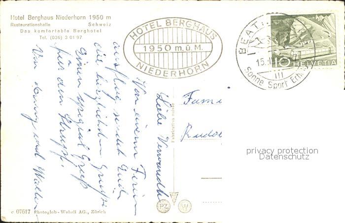 12055541 alte Postkarte Niederhorn Hotel Berghaus Restaurant postalisch gelaufen Erhaltung siehe scans KatCode: 11470410110994