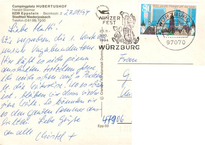 73885549 alte Postkarte Niederjosbach Campingplatz Hubertushof Panorama Teilansichten postalisch gelaufen Erhaltung siehe scans [WerneD78] KatCode: 11110006436002