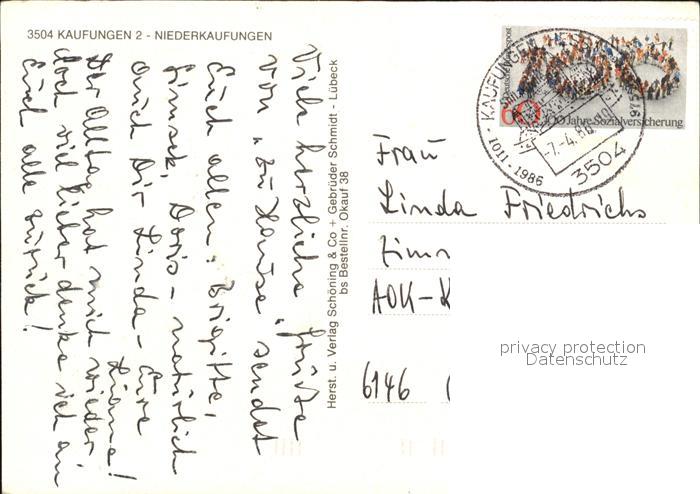 alte Postkarte Niederkaufungen Panorama Ev Kirche Steinertsee Buergerhaus postalisch gelaufen Erhaltung siehe scans