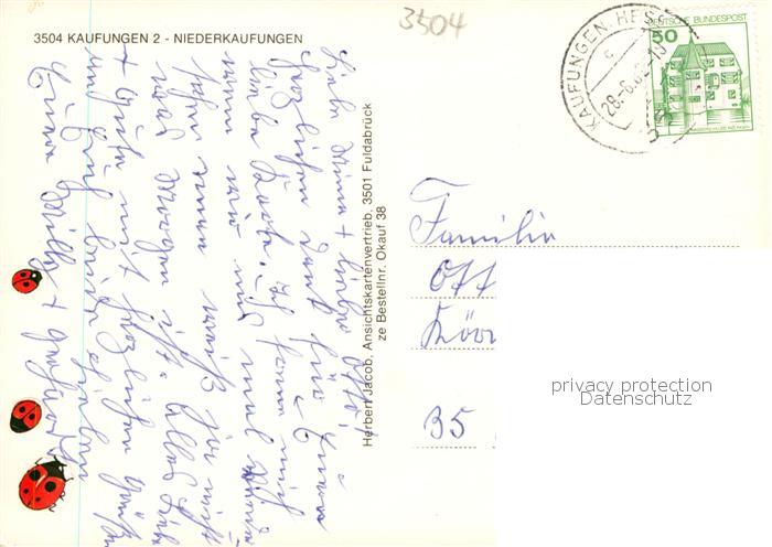 73870244 alte Postkarte Niederkaufungen Panorama Ev Kirche Steinertsee Buergerhaus postalisch gelaufen Erhaltung siehe scans [WerneD78] KatCode: 11110006633015