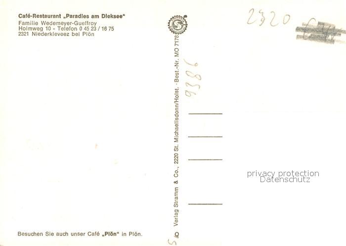 73646450 Niederkleveez Cafe Restaurant Paradis am Dieksee postalisch nicht gelaufen Erhaltung siehe scans [WerneD78] KatCode: 11110001057009