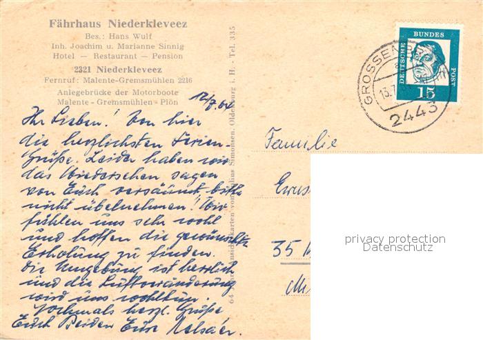 73017821 alte Postkarte Niederkleveez Faehrhaus Niederkleveez Hotel Restaurant postalisch gelaufen Erhaltung siehe scans [WerneD78] KatCode: 11110001057009
