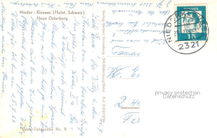 73642289 alte Postkarte Niederkleveez Haus Osterberg postalisch gelaufen Erhaltung siehe scans [WerneD78] KatCode: 11110001057009