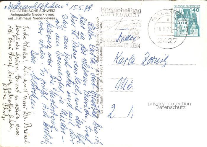 72045119 alte Postkarte Niederkleveez Holsteinische Schweiz Anlegestelle Faehrhaus Fliegeraufnahme postalisch gelaufen Erhaltung siehe scans KatCode: 11110001057009