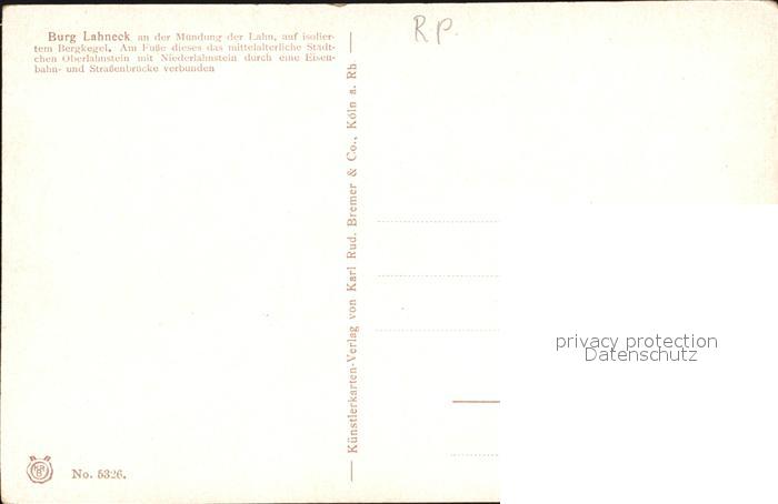 72429011 Niederlahnstein Burg Lahneck Kuenstlerkarte postalisch nicht gelaufen Erhaltung siehe scans KatCode: 11110007141075