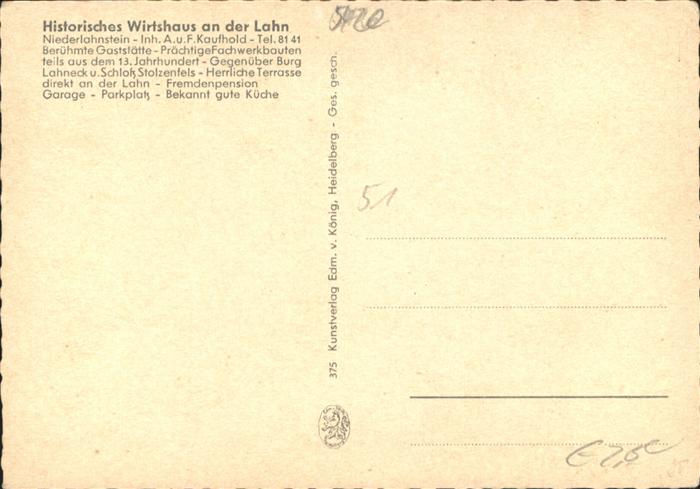 40924712 Niederlahnstein Historisches Wirtshaus Lahn Reim KatCode 11110007141075