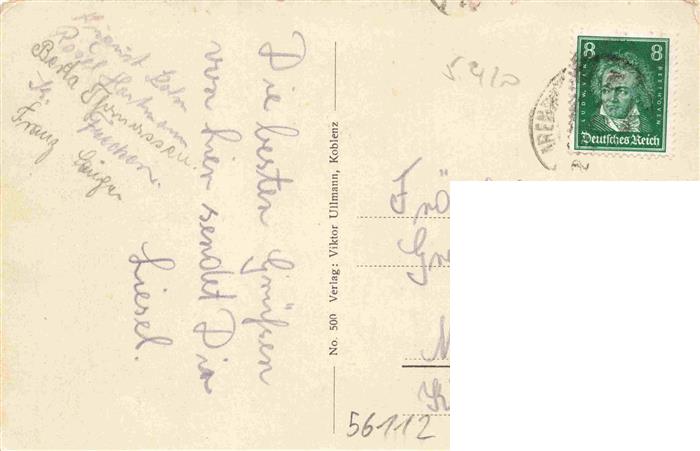 73961476 alte Postkarte Niederlahnstein Lahnstein Burg Lahneck Oberlahnstein Blick ins Lahntal postalisch gelaufen Erhaltung siehe scans [FriedD77] KatCode: 11110007141075