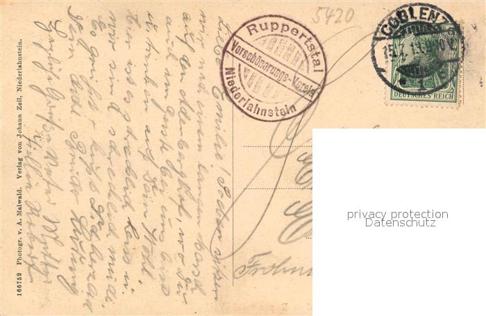 73559609 alte Postkarte Niederlahnstein Partie aus dem Ruppertstal Wasserfall postalisch gelaufen Erhaltung siehe scans [FriedD77] KatCode: 11110007141075