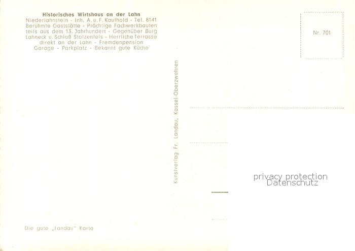 73671306 Niederlahnstein Wirtshaus an der Lahn postalisch nicht gelaufen Erhaltung siehe scans [WerneD78] KatCode: 11110007141075