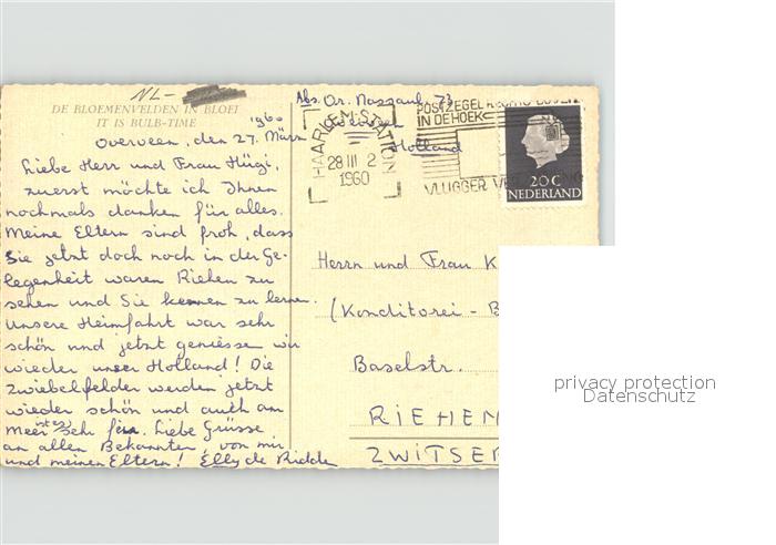 old postcard Niederlande Blumenfeld Windmuehle postalisch gelaufen