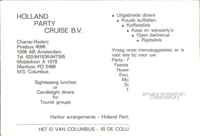 Niederlande Holland Party Cruise B. V. postalisch nicht gelaufen Werbekarte (keine Postkarte) Erhaltung siehe scans