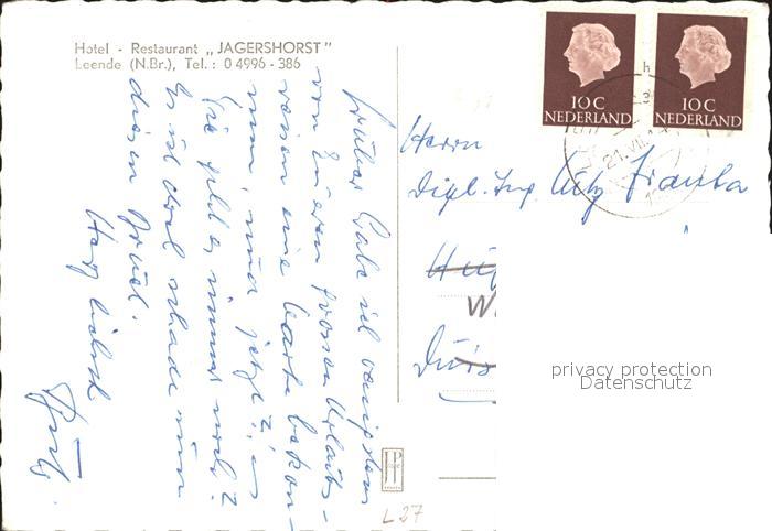 old postcard Niederlande Hotel Restaurant Jagerhorst Leende postalisch gelaufen