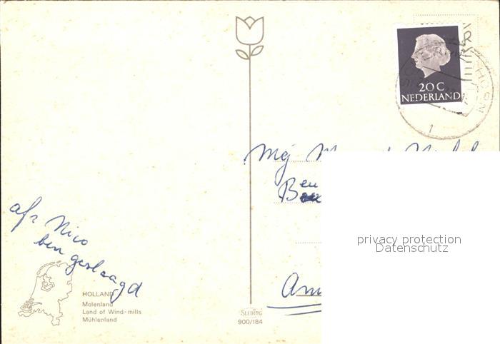 old postcard Niederlande Land der Windmuehlen postalisch gelaufen Erhaltung siehe scans