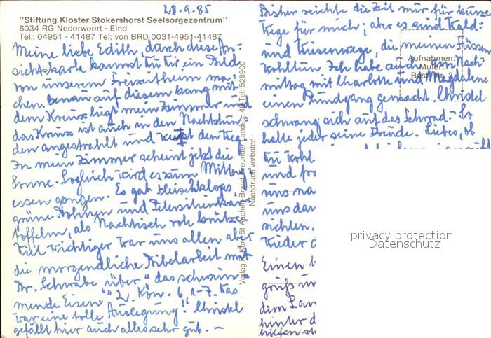 Niederlande Nederweert-Eind Stiftung Kloster Stockershorst postalisch nicht gelaufen Erhaltung siehe scans