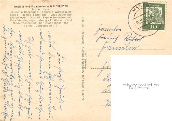 73757945 alte Postkarte Niederlandenbeck Sauerland Gasthof und Fremdenheim Waldfrieden postalisch gelaufen Erhaltung siehe scans [WerneD78] KatCode: 11110005958016