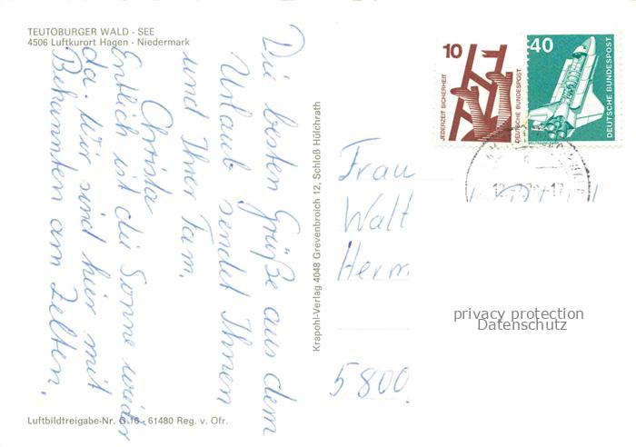 74023203 alte Postkarte Niedermark Hagen Teutoburger Wald-See postalisch gelaufen Fliegeraufnahme Erhaltung siehe scans [FriedD77] KatCode: 11110003459020